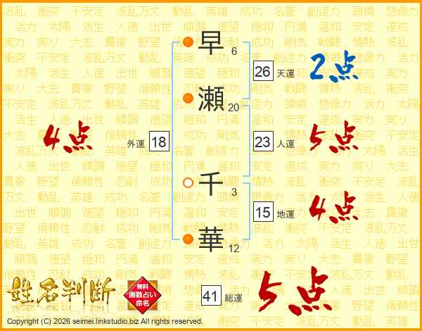 早瀬千華さんの天運は26画の2点!