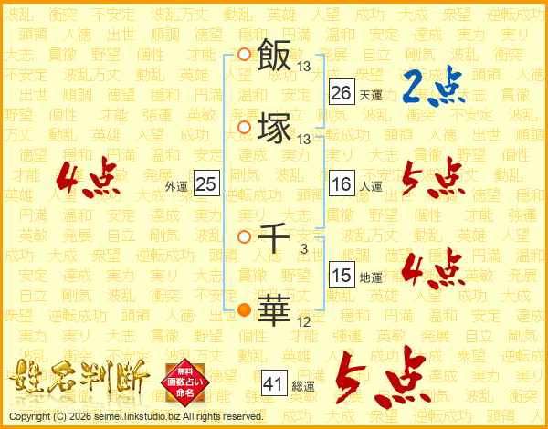 飯塚千華さんの天運は26画の2点!