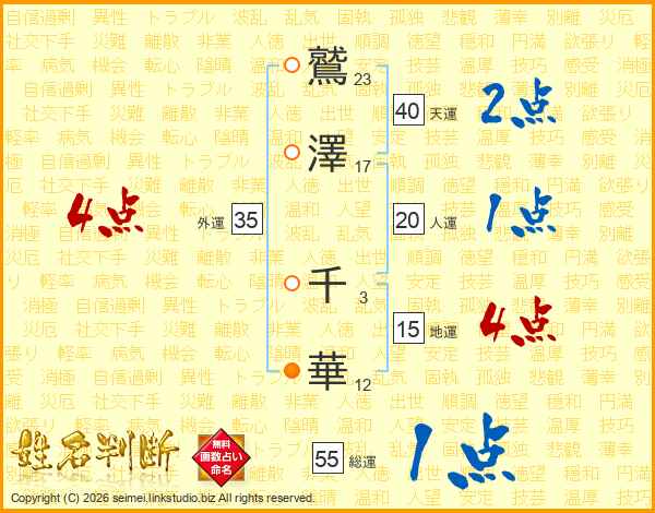 鷲澤千華さんの天運は40画の2点!