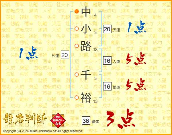 中小路千裕さんの人運は16画の5点!