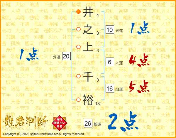 井(4画)之(3画)上(3画) 千(3画)裕(13画)
