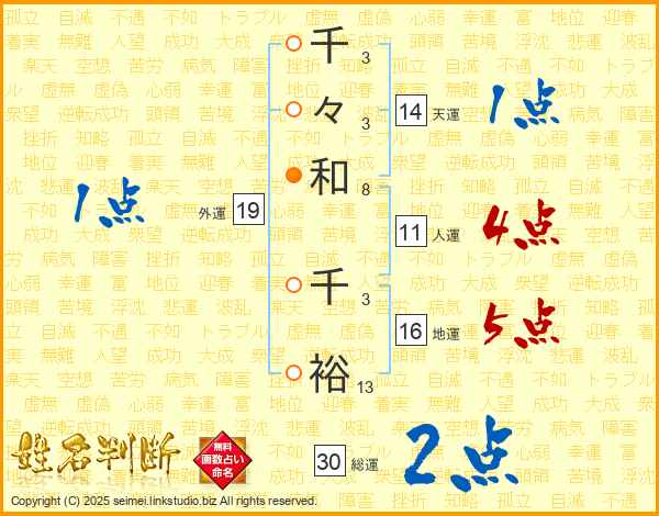 千(3画)々(3画)和(8画) 千(3画)裕(13画)