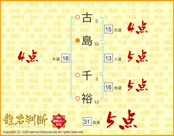 古島千裕さんの総運は31画の5点!