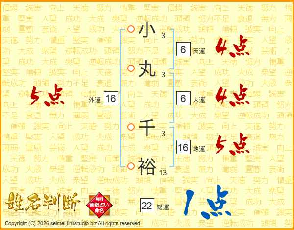 小丸千裕さんの総運は22画の1点!