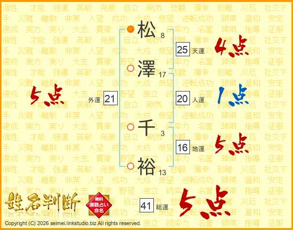 松澤千裕さんの総運は41画の5点!