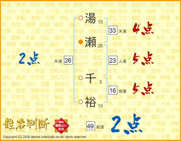湯瀬千裕さんの総運は49画の2点!