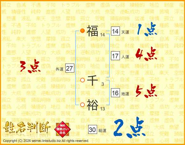 福千裕さんの天運は14画の1点!