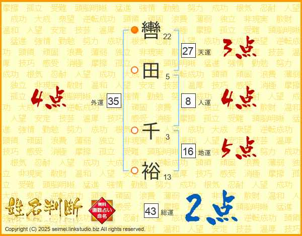 轡田千裕さんの総運は43画の2点!