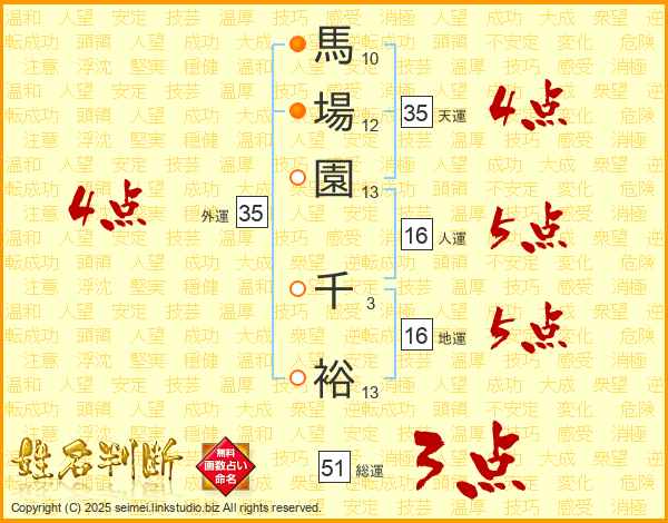 馬場園千裕さんの外運は35画の4点!
