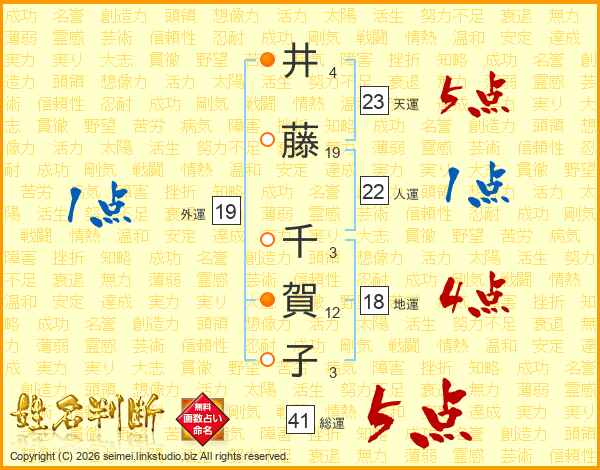 井藤千賀子さんの総運は41画の5点!