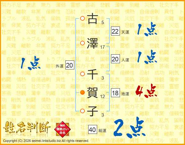 古澤千賀子さんの総運は40画の2点!