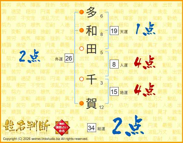 多和田千賀さんの天運は19画の1点!