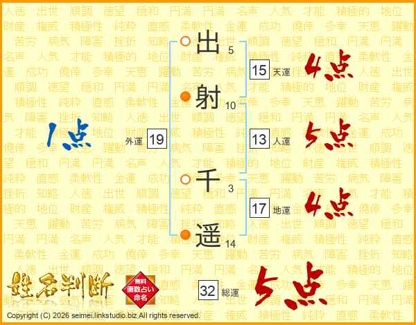 出射千遥さんの総運は32画の5点!