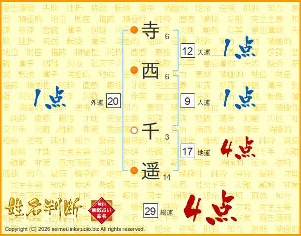 寺(6画)西(6画) 千(3画)遥(14画)