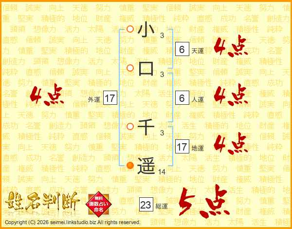 小口千遥さんの外運は17画の4点!