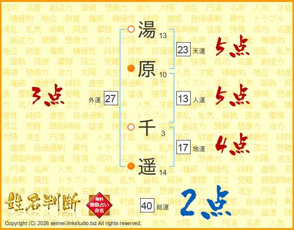 湯原千遥さんの天運は23画の5点!