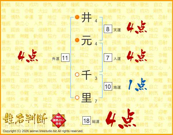 井(4画)元(4画) 千(3画)里(7画)