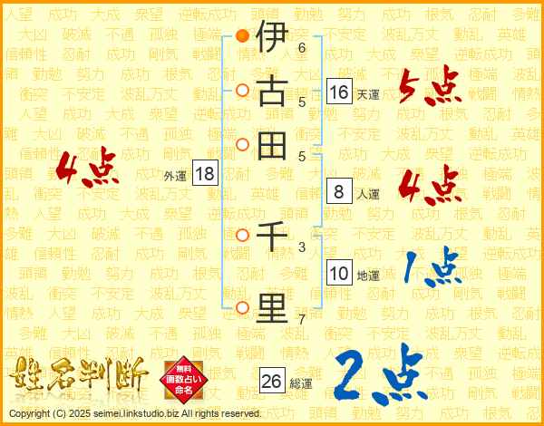 伊古田千里さんの総運は26画の2点!