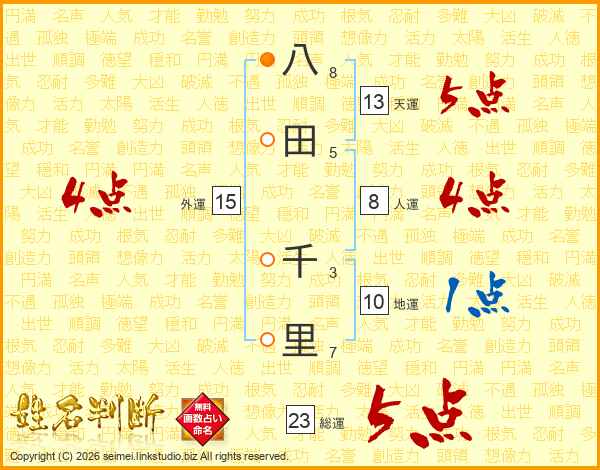 八田千里さんの総運は23画の5点!
