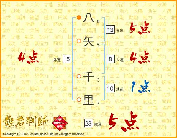 八矢千里さんの総運は23画の5点!