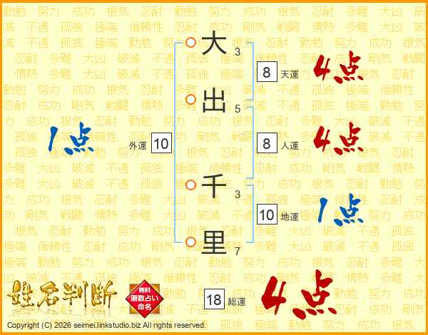 大出千里さんの総運は18画の4点!