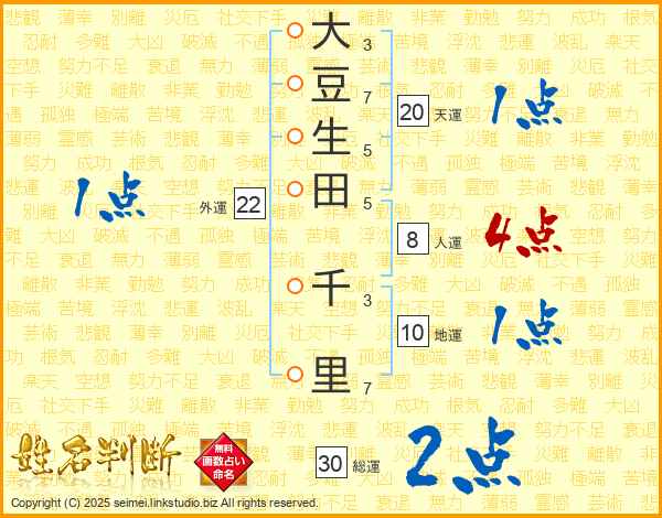 大豆生田千里さんの総運は30画の2点!