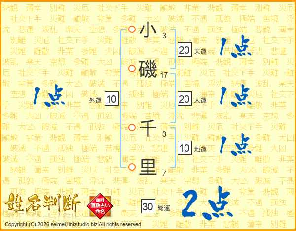 小(3画)磯(17画) 千(3画)里(7画)