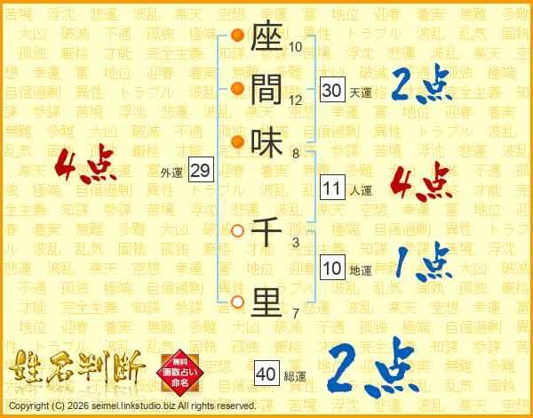 座間味千里さんの総運は40画の2点!