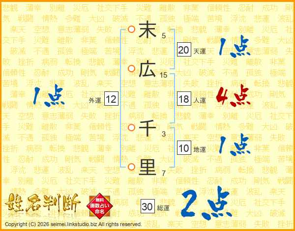 末広千里さんの総運は30画の2点!