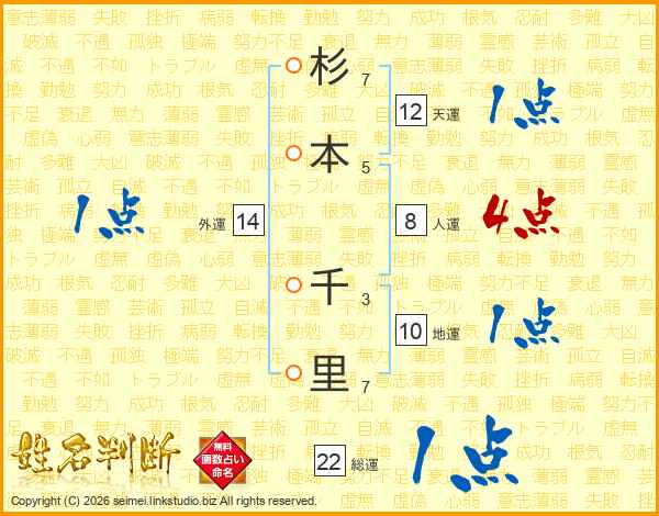 杉本千里さんの総運は22画の1点!