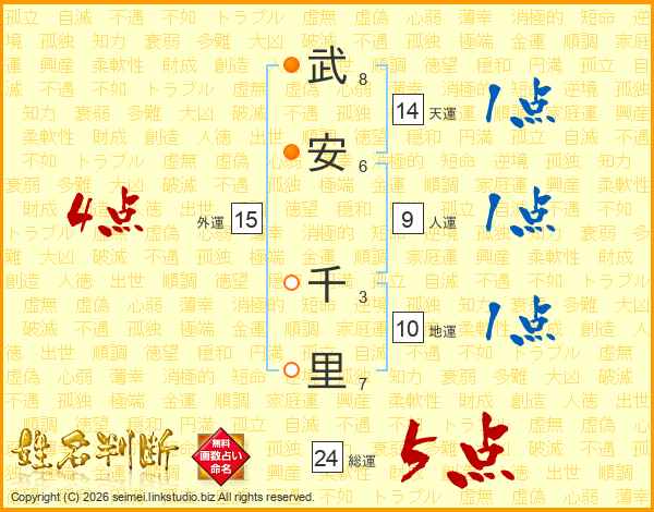 武安千里さんの総運は24画の5点!