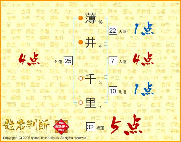 薄(18画)井(4画) 千(3画)里(7画)