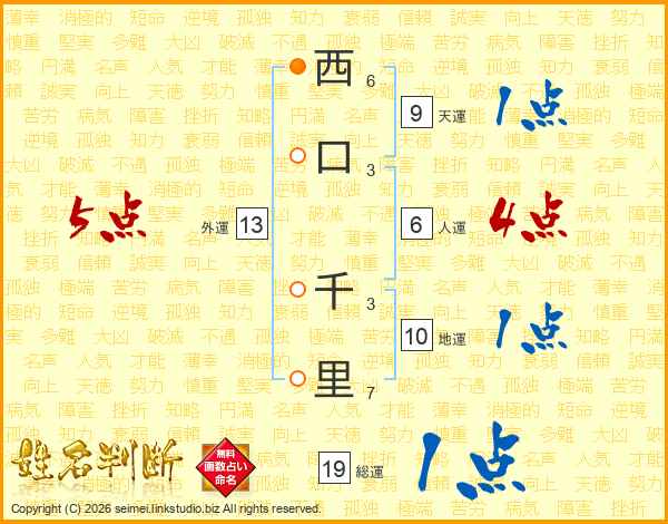 西口千里さんの総運は19画の1点!