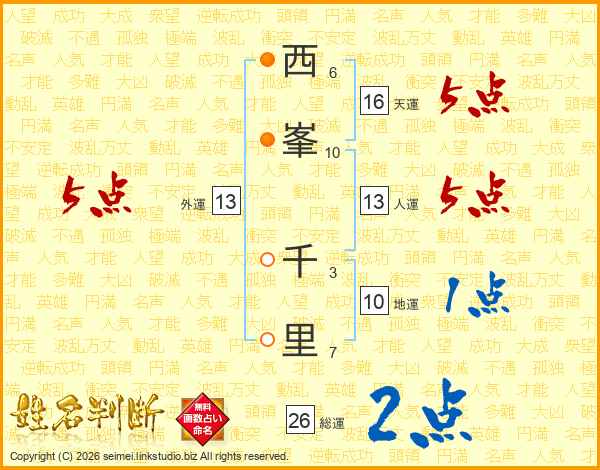 西峯千里さんの人運は13画の5点!