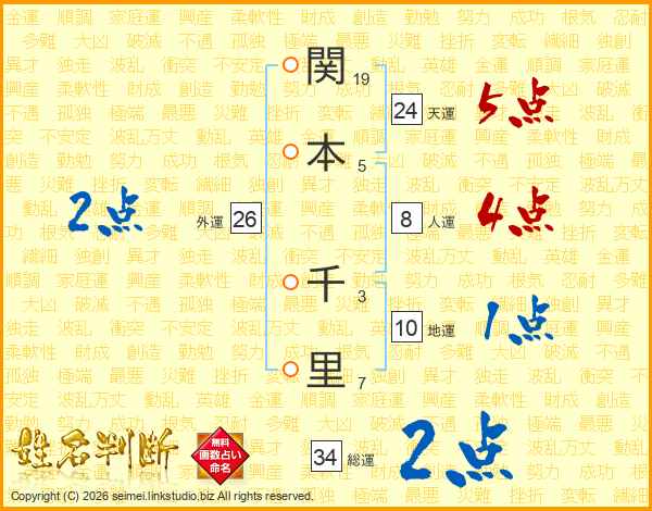 関本千里さんの天運は24画の5点!
