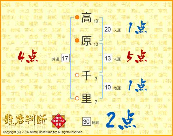 高原千里さんの総運は30画の2点!