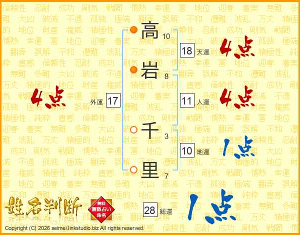 高岩千里さんの総運は28画の1点!