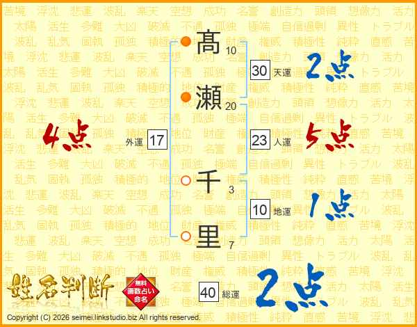 髙瀬千里さんの総運は40画の2点!