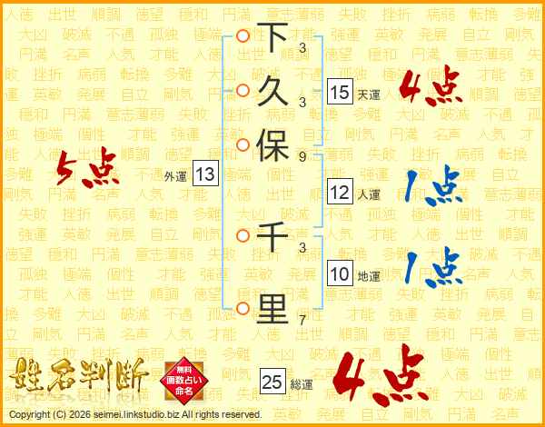 下久保千里さんの総運は25画の4点!