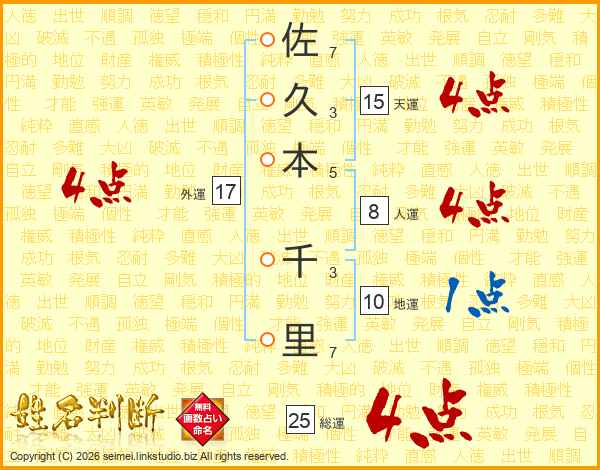 佐久本千里さんの総運は25画の4点!