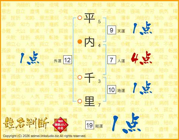 平内千里さんの総運は19画の1点!
