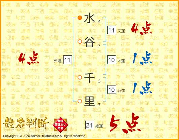 水谷千里さんの総運は21画の5点!