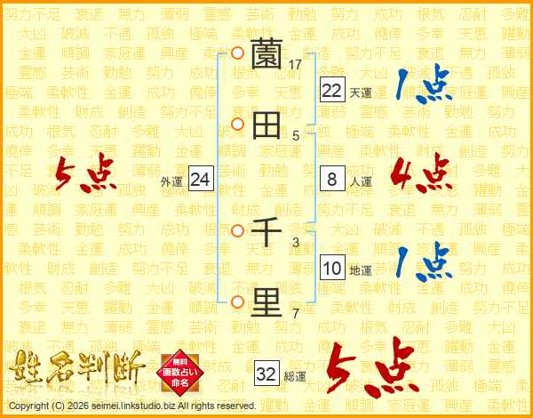 薗田千里さんの総運は32画の5点!