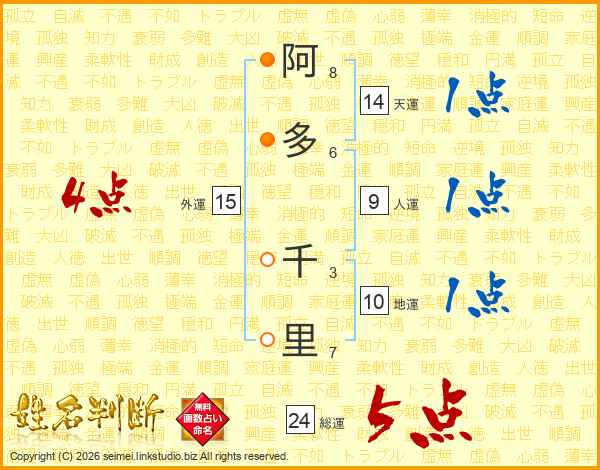 阿多千里さんの総運は24画の5点!