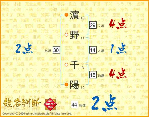 画数の奇数(○陽)と偶数(●陰)の配列で吉凶を占います。どちらかにかたよる名前は大凶名で避ける必要があります。画数の奇数偶数。