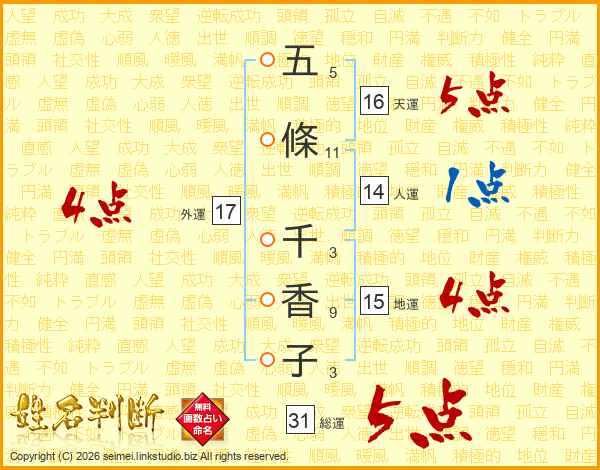 五條千香子さんの総運は31画の5点!