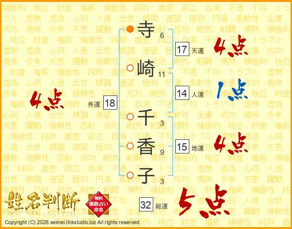 寺崎千香子さんの外運は18画の4点!
