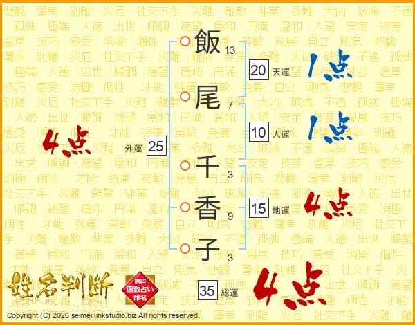 飯尾千香子さんの総運は35画の4点!