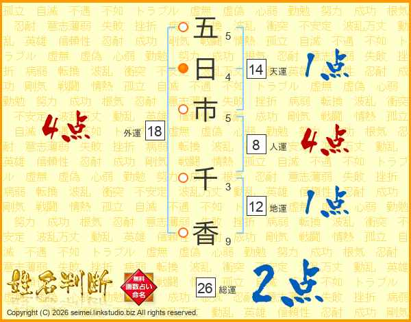 五日市千香さんの外運は18画の4点!