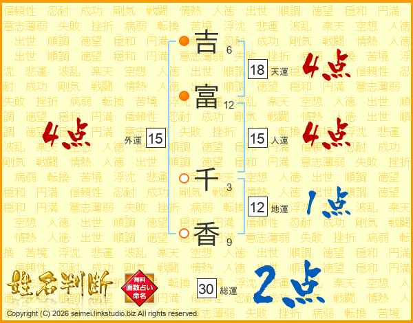 吉(6画)富(12画) 千(3画)香(9画)